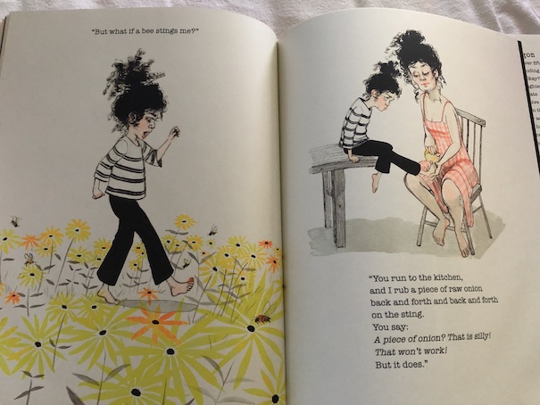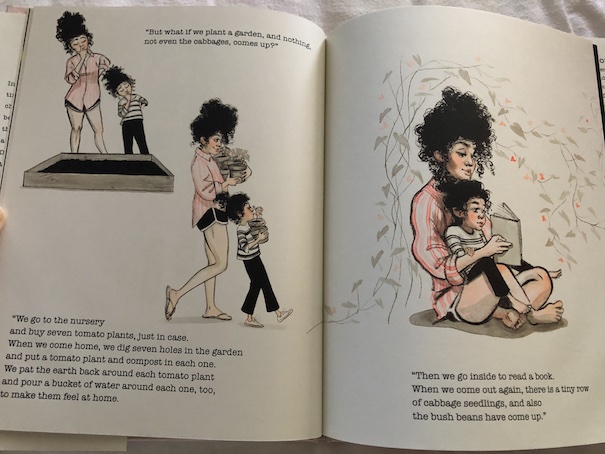 Among the things in the workbox, Marianne finds an old pencil. She immediately likes the look of the stubby old pencil and has the sense that it would be fun to use for drawing, so she picks up her drawing book and begins to draw a picture of a house with a fence around it and some flowers. Marianne’s drawing isn’t particularly great, not as good as what she pictured in her mind’s eye when she started it, but it is the start of something very special.