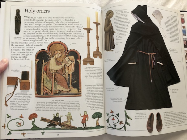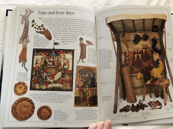The book describes the rise of Islam during the early Middle Ages, increases in trade and commerce, the growth of towns, and guilds that controlled different professions. It also describes Medieval music and entertainment, such as plays and parades. One of my favorite parts of the book is about fairs and feast days.