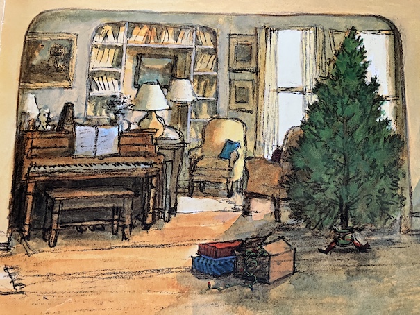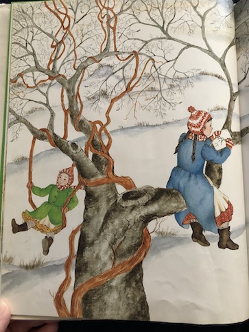 I thought this was a charming Christmas story! When I first saw the title, I guessed that the family would use an apple tree as a Christmas tree, but that’s not it at all. It’s just about the family feeling sad about the loss of their apple tree and how the remains of the tree made it a memorable Christmas. Because the father of the family saved their favorite parts of the tree when he was cutting up the rest for firewood, they will still be able to enjoy the things they loved about the tree, particularly Katrina, who receives a special drawing table made out her favorite branch of the tree.