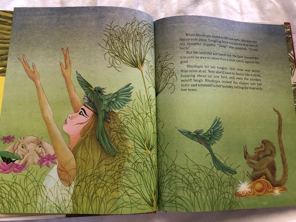 I enjoyed this fun story where a clever girl tricks a classical trickster. She knows that the fox is really fox, but she uses the similarities between the features of a fox and the features of other animals to pretend like she doesn’t and to keep the fox attempting to convince her until she reaches a point where the fox can no longer pursue her. Knowing the author’s connection to this folk tale style story adds an element of coziness, imagining the author hearing the story as a little girl herself.