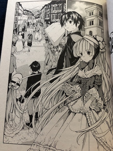 When the story begins, Kazuya has just received his allowance from home, and another friend at school, Avril, convinces him to come shopping with her. Avril is one of the students who really loves ghost stories, and she insists on telling them to Kazuya, even though he doesn’t want to hear them. Avril knows about Victorique, and she tells Kazuya that the rumor is that Victorique isn’t really a human but a legendary creature call a “gray wolf.” Kazuya doesn’t think Victorique is anything other than an extremely smart but also extremely temperamental girl.