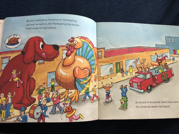 Christmas is coming, and Emily Elizabeth and Clifford are ready to celebrate! Emily Elizabeth talks about how the Christmas season begins with Thanksgiving. (That’s not how everyone regards it, but it is a common way to mark the season in the United States. The day after Thanksgiving, Black Friday, is considered the start of the Christmas shopping season, with people looking for bargains on Christmas presents.)