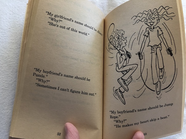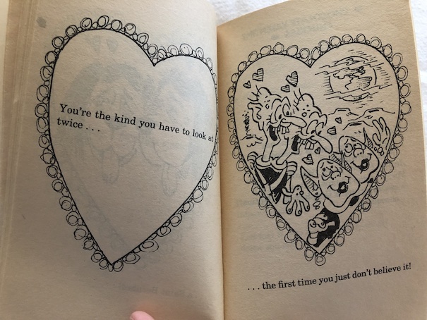 One of the things that surprised me about this book is that some of the jokes are weirdly insulting for a Valentine-themed book. It just struck me as odd that there were jokes with people basically insulting their boyfriends or girlfriends or sending insulting Valentines.