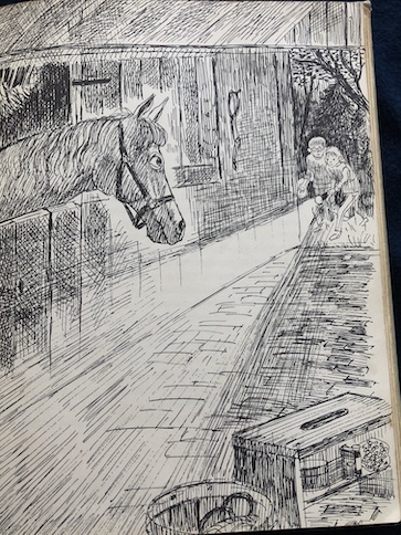 That last part didn’t sound very reassuring to me, the reader. However, Rainbow is able to get his harness on Lucky. When Rainbow gets up on Lucky’s back to ride him home, Lucky starts running in the opposite direction from home. Lucky tries to throw Rainbow off or scare him at first, but when he realizes that Rainbow isn’t scared and loves being on his back, Lucky begins to calm down and enjoy the ride himself.