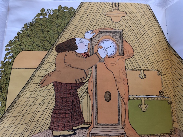 Getting back to Alastair’s return, he eventually shows up at the shieling and talks to the children, explaining what happened to him. He says that he tried to talk to them before, but they weren’t at the shieling the last time he stopped by. His plane was wrecked in the Pacific (They don’t say that it happened during the war, so it might not have been. I thought they might have been implying that he was a pilot in the war, but that would play with the timing of later books in the series.), as they heard, and he spent some time living with a native group on an island. The natives were friendly enough and helped him, but it took him awhile to learn enough of their language to really communicate with them and figure out how to get to a place where he could arrange passage home. That was when he first learned that he’d been declared dead. Since then, he’s been reestablishing his identity and checking on the estate that he’s inherited. By the time that Alastair finally shows up at the shieling and introduces himself to the children, they’ve heard that Kindrachill House is supposed to be sold to pay the mortgage. When they ask Alastair about it, he confirms that he doesn’t have the money he needs to pay the mortgage. He almost didn’t come back to the area at all because he didn’t think there was anything there for him. However, it turns out that he’s an art lover, and when he went to a showing of Mrs. Paget’s paintings in Glasgow, he saw the painting she did of the old village and how she included the smoke rising from the shieling where Ian and Sovra were staying. That made him want to return to his old cottage and see who was there. So, the legend about a fire in the hearth bringing the Gunn heir home comes true.