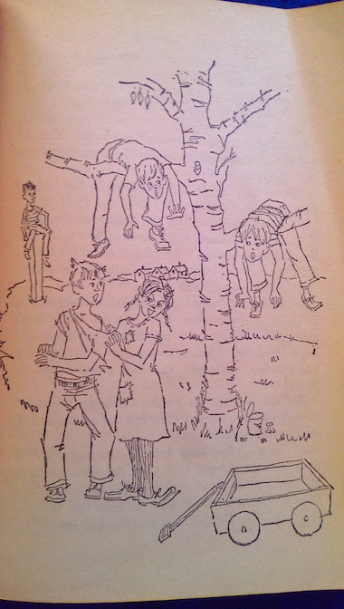 During the story, Winston is in the habit of thinking of Heidi by insulting terms, like “troglodyte”, because she is strange and awkward and her weird habits and temperamental fits cause problems for him, like preventing him from bringing friends to the house. At a couple of points, he thinks of her as a “golliwog”, which is an insulting racial term, based on a style of old dolls that look like black-faced minstrels, and later, even Heidi describes herself that way. (The term was actually coined in an old children’s book, where one of these dolls comes to life with some other toys. The doll character was actually a nice character, but since the dolls are considered ugly, its meaning has become an insult.) Winston doesn’t mean that in the racial sense here. He’s trying to convey that Heidi has an awkward, abnormal appearance.