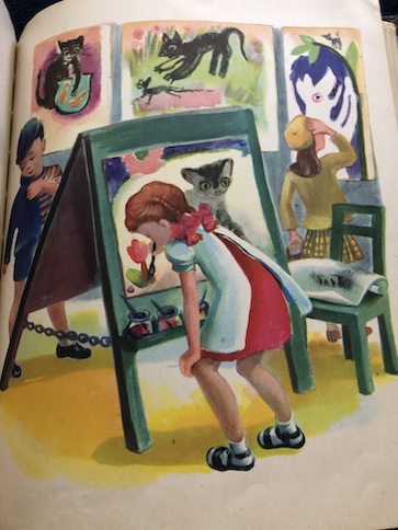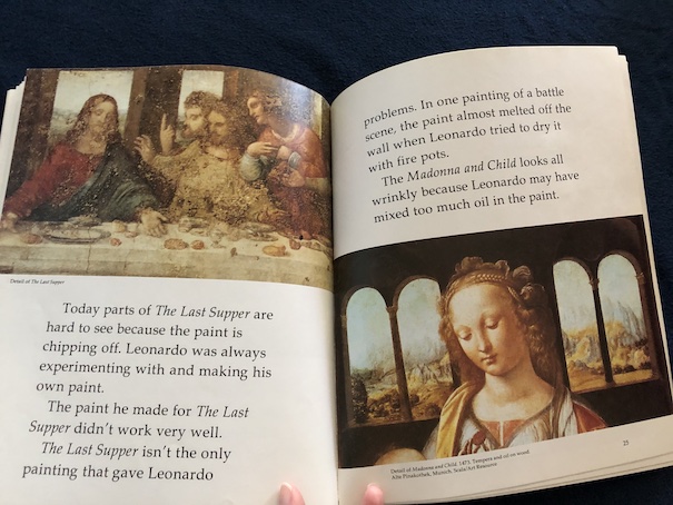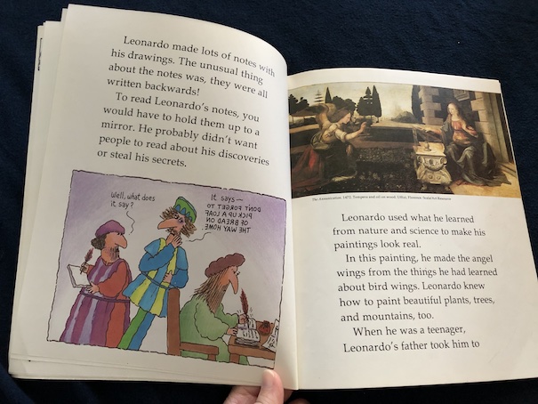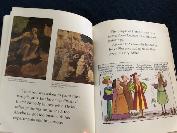 This is a lovely book about travel, art, and the beauty of nature and plants. Initially, Linnea becomes interested in Monet because of her love of plants and flowers, and when her neighbor says it’s possible to visit the garden Monet painted, she becomes interested in Monet’s life and work. I grew up learning about art and famous artists because my mother used to teach art lessons through a special program at my school. I don’t remember seeing this book at that time, although it is old enough that I could have. I found it by accident at a thrift store, and it reminded me of the art books that my mother kept around the house when I was a kid.