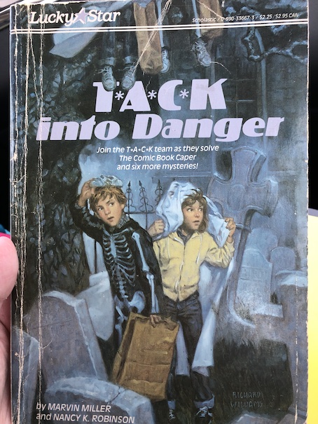 This book is part of the TACK mystery series, which is very much like the Encyclopedia Brown series, although it’s not as well known and doesn’t have as many books. In fact, my copy references Encyclopedia Brown on the back: “Move over Encyclopedia Brown … make way for the TACK Team!”