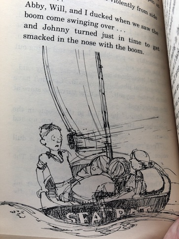Abby comes to visit her friends for the summer, and they tell her about the cases they’ve recently solved, especially the one about the boat theft. As their reward for catching the thieves, they’ve been getting free sailing lessons from the boat owner, Johnny, and Abby gets to join them. However, while they’re out sailing, someone else driving their motorboat recklessly breaks a sign and rocks their boat. The boom swings over and hits Johnny in the face, breaking his nose. The kids need to get Johnny to the Coast Guard station, but how will they figure out which way to go with the sign broken?