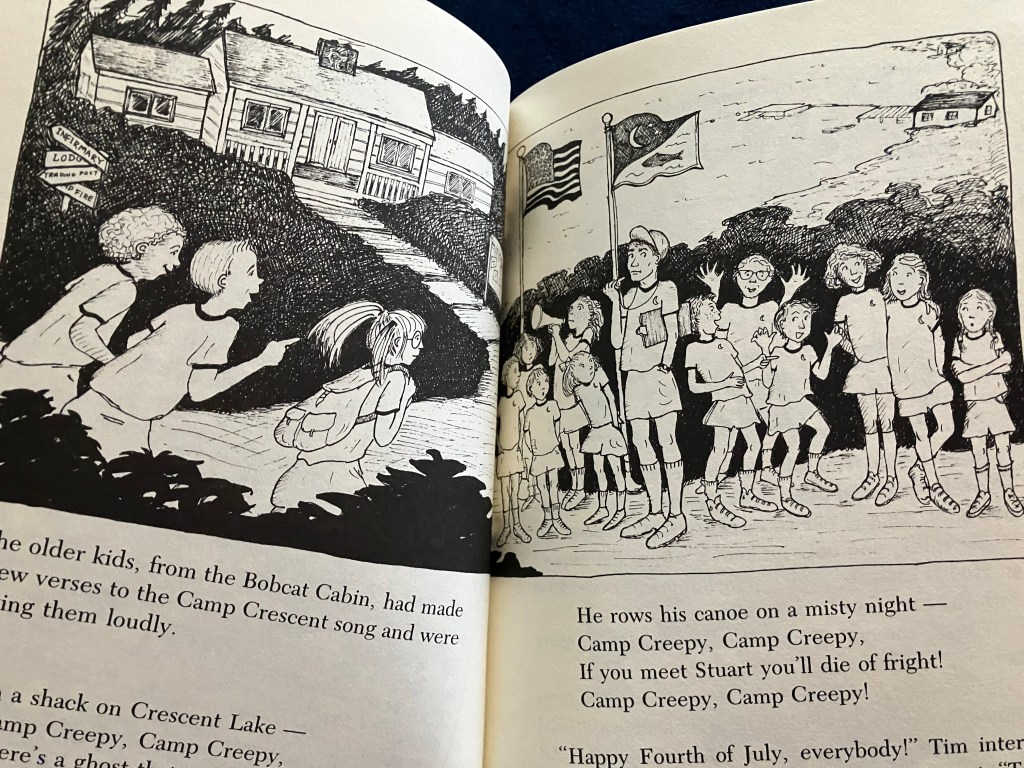 Meg Mackintosh is at a summer camp in Maine! The camp is called Camp Crescent, but it soon gets the name Camp Creepy because there’s a ghost story about the camp. The story says that an old man named Stuart once lived in the building that the camp uses for a boathouse and that he still haunts the camp. When people start hearing strange noises at night, the campers start thinking maybe the ghost story is true.