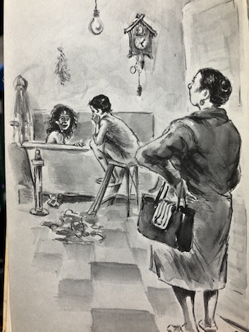 The book describes some boys talking about how they aren’t afraid of their new teacher, but 19th century teachers were tough, strict, and not afraid of administering even physical punishments. The next small section describes the punishment given to a pair of misbehaving boys.