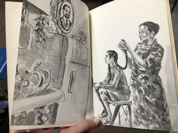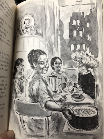 Anna attends a girls-only school, where the girls are taught skills that farm wives would find useful, such as how to cook, how to sew, and how to make medicines from herbs. (Herbal medicines are popularly thought to be more Native American than a white person’s thing, but in the days when most people lived on farms or in rural areas and weren’t very near doctors, everybody had to know how to make a few basic remedies for common ailments. White people did have a tradition of herbal medicines from Europe, but one of the issues with that was that white people were more familiar with plants from Europe than plants native to the Americas. The book doesn’t explain this, but European colonists brought some of the plants that they commonly relied on from Europe, and apart from that, they had to learn how Native Americans used the local plants.) The Native American boys learn how to be farmers at their school. (Exactly how this kind of education differed from their traditional Native American lifestyles depends somewhat on the tribe, but basically, one of the goals was to make Native American society into permanent agrarian settlements, specifically on land nobody else really wanted, rather than nomadic or semi-nomadic, which had been the previous way of life for some of them. They also learned to grow different types of plants than the ones that their society would have traditionally cultivated, more in line with the European-based crops favored by white people.)