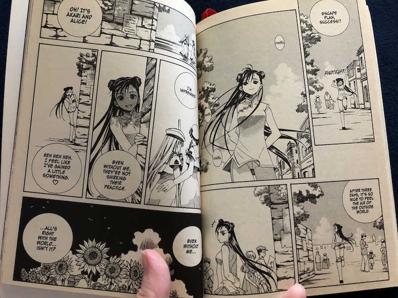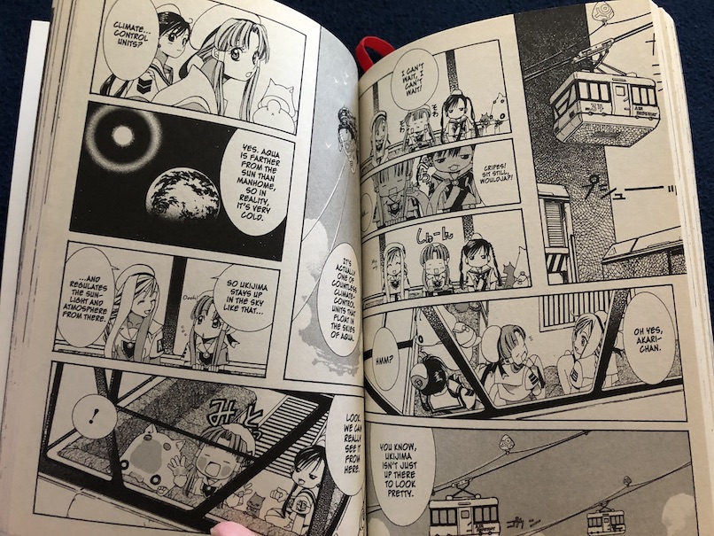 The series has received some criticism for being slow and lacking danger and adventure, but that is not really the point of the series. The main purpose is to show people how to appreciate the small pleasures of life. The sci-fi and fantasy elements (the spaceships, advanced environmental controls, intelligent Martian cats, and even the occasional appearances of the legendary Cait Sith) are mainly background to the stories about the magic of friendship and simple pleasures. Each volume contains a few short stories about Akari and her friends and the little adventures they have on a daily basis and the life lessons they learn. It’s a great series for relaxing when you’re stressed out.