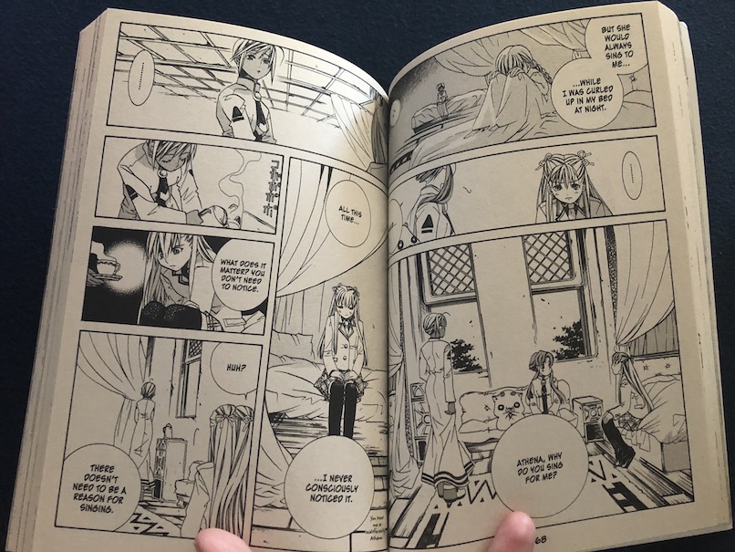 Akari observes the little things that Athena does for Alice, like singing to her at night, and points out to Alice that her left hand helps her more than she realizes.