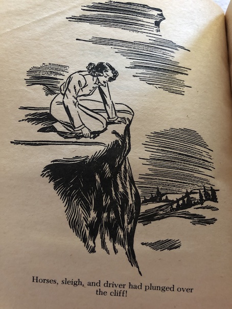 I also noticed that the gypsies in the story are described as being non-white people because they have darker skin, and even Ruth seems to dislike them and be suspicious of them for that alone. Granted, these particular people are actually criminals in the story who kidnap Ruth and Helen, but Ruth was thinking that just from looking at them. While I would have understood Ruth being reluctant to trust them because they’re strangers and because they know from the men in the empty house that there are thieves in the area, it’s their darker skin that bothers Ruth first. When Ruth first meets Roberto’s grandmother, Ruth thinks that the gypsy woman is too dark and strange/foreign to be trustworthy, and she later hates that her gypsy disguise involves bare feet and her skin dyed darker. She is ashamed of the way she looks in that disguise and thinks that she would be embarrassed for Tom to see her looking like one of the gypsies. Ruth’s prejudices bothered me more than if another character had done it because, while the older Stratemeyer Syndicate books do have inappropriate racial language and attitudes, the characters who are outright racists are typically the ones the stories show to be unfriendly antagonists or outright villains. From what I’ve seen so far, it’s rare for a friendly main character to be outright disparaging of racial appearances even if they have stereotypical notions about other people.