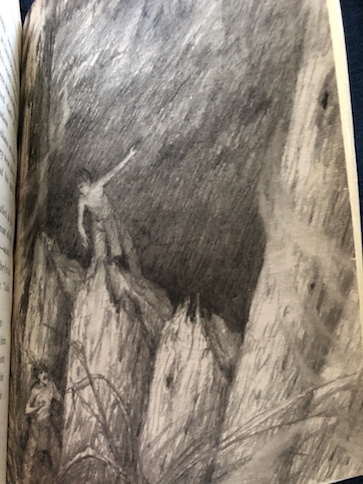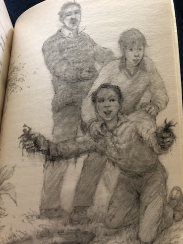 Much of the story is told through entries in Jessica Charlotte’s notebook. When Omri begins to read the notebook, written toward the end of Jessica Charlotte’s life, he learns, to his shock, that Jessica Charlotte was the original owner of the magic cupboard and that she had her own Little People who visited her from other times and were her friends. After Omri reads that, he questions Gillon, the brother who gave him the cupboard, and he admits that he didn’t really find it in an alley, like he said. He actually found it in the basement of their old house with a bunch of other junk. He just didn’t have the money to buy Omri a birthday present at the time, and Omri had kind of a fascination for secret drawers and boxes, so Gillon thought that he might have some fun with the old cupboard, and he made up the story about mysteriously finding it to make it more interesting. (I suspect that the author was just retconning this part to make it agree with the idea that the cupboard was passed down through Omri’s family, but I like the way this comes out, so I’m okay with that.)