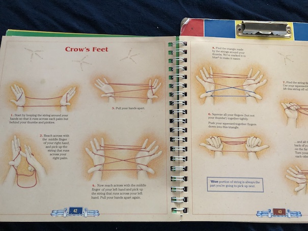 However, even though most of the activities are meant for car trips, many of them would be good for airplane trips as well. When I was a kid, airplanes were quieter, and it was much easier to talk to the person in the seat next to yours than it is now, so the talking games are still better for car trips. However, making friendship bracelets are ok for planes and trains as well as in a car. There are also activities for folding a dollar bill and making a paper fortune teller, making string figures, drawing superheroes, writing things in secret codes, reading palms, and learning some basic sign language.