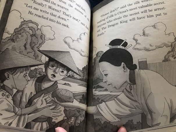 Jack and Annie are invited to join the food-gathering efforts, although it’s difficult for them because they’re not used to hunting and fishing, like 17th century children would be. Annie thinks it won’t be so bad because they’ve helped their parents prepare for Thanksgiving before, but the types of food at this harvest festival are very different from the “traditional” Thanksgiving food the children would have expected, and the methods of preparing them are old-fashioned. Jack and Annie find themselves trying to catch eels and find clams and trying to tend things cooking over an open fire. The children’s efforts don’t go well, and at first, they’re afraid that they’ve ruined the feast, but the magic they came to seek saves everything.