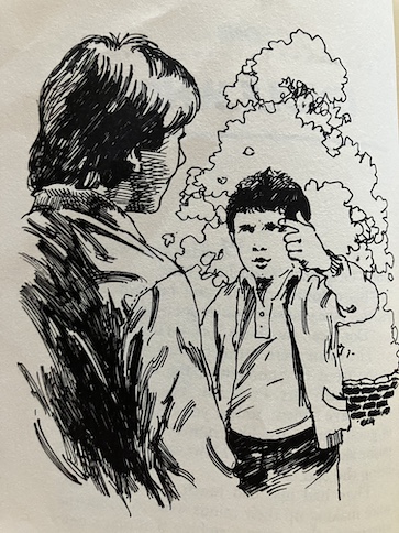 Before they leave Trent’s dorm room, the boys sneak a look at Trent’s belongings, and they learn a few things about him. Trent has a girlfriend named Jeannie who lives in their town and has written letters to him. He’s also in danger of failing his chemistry class if he doesn’t get some extra help, and if he fails chemistry, he could lose his scholarship. The boys figured that his problems with his classwork and the threat of losing his scholarship are probably what was worrying him so much.
