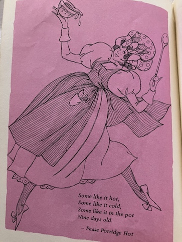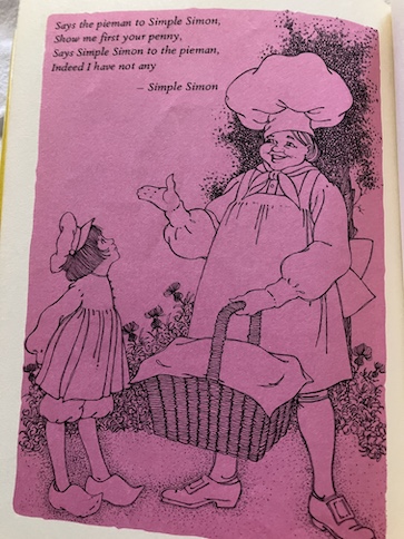 Second, some of the recipes sound a bit fancy for a child’s cookbook, but as a kid, I found them intriguing because they had a kind of old-fashioned quality that I thought made them seem more like nursery rhyme and fairy tale foods. Because, as a kid, I rarely ever had the patience to read the introductions to books before plunging right in, I missed some of the historical information behind some of these recipes and rhymes that the book explains in its introduction. Rereading this as an adult, though, I really appreciated the thought that the author put into the history of food in nursery rhymes.